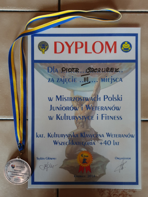 Teraz mam 57 lat i dzięki wypracowanym przeze mnie technikom adaptacyjnym przebudowałem swoją sylwetkę w przeciągu kilku lat. Dlaczego trwało to u mnie dłużej? Żadna z dostępnych metod nie gwarantowała przyspieszenia przemiany materii. Przy wykorzystaniu kolejnych diet i liczeniu kalorii można było osiągnąć jedynie doraźny cel. Zawsze po zaprzestaniu liczenia kalorii waga wracała do poprzedniego stanu. Nie miałem żadnego gotowego programu gwarantującego osiągnięcie trwałego rezultatu. Do wszystkiego musiałem dochodzić metodą prób i błędów. Ty możesz dowiedzieć się wszystkiego w ramach krótkiego szkolenia (kilka konsultacji) u mnie. Zastosowanie opracowanego przeze mnie programu pozwoliło mi w wieku 51 lat wystartować w zawodach kulturystycznych. Zająłem 6-te miejsce w kategorii open (wiek 16 – 60 lat) w kulturystyce klasycznej. Rok później w Katowicach zostałem drugim wicemistrzem Polski w Mistrzostwach Polski. W następnym roku zająłem 5-te miejsce w tych samych dorocznych Mistrzostwach Polski w kulturystyce weteranów . Podkreślenia wymaga fakt, że praktycznie wszyscy kulturyści startujący po 50 roku życia uprawiali ten sport od wczesnej młodości. Ja natomiast do 40 roku życia nie miałem żadnej styczności ze sportem, a moja sylwetka była „typowa” na ten wiek. Z tego względu opracowany przeze mnie program jest unikalny, choć część jego założeń jest zbieżna z ogólnie przyjętymi zasadami zdrowego trybu życia i odżywiania. Diabeł jednak tkwił w licznych szczegółach związanych z moim trybem życia, które metodą prób i błędów udało mi się skorygować.